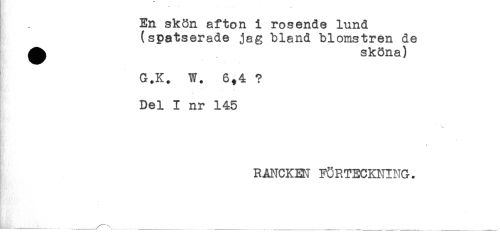//// En skön afton i rosende lund //// (spatserade jag bland blomstren de //// ^ sköna) //// G.K. W. 6,4 ? //// Del I nr 145 //// < //// t-'- //// RÅNCKM FOR TECKNING. ////