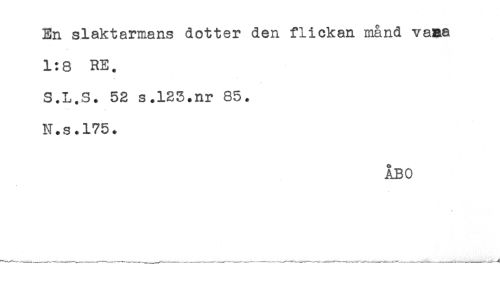 //// En slaktarmans dotter den flickan månd vana //// 1:8 RE. //// S.L.S. 52 s.123.nr 85. //// N.s.175. //// ÅBO ////