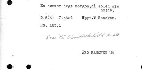 //// ) En sommar dags morgon,då solen sig //// höjde, //// * //// 5:8(4) J:stad Uppt.W.Rancken. //// R5, 183,1 //// ÅBO RANCKEN MS ////