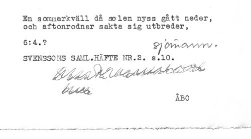 //// En sommarkväll då solen nyss gått neder, //// och aftonrodnar sakta sig utbreder, //// 614. ? ^ ' //// SVENSSONS SÅHL.HÄFTE NR.2. s.10. //// ABO ////