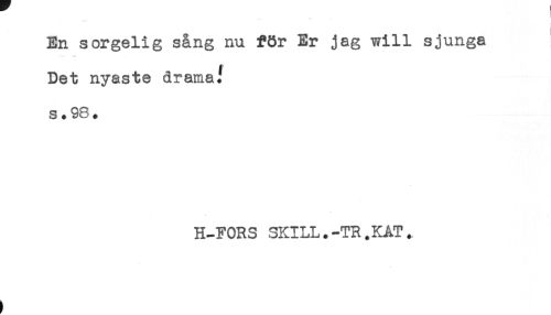 //// En sorgelig sång nu för Er jag will sjunga //// Det nyaste dramai //// H-FORS SKILL.-TR^KÅT. ////