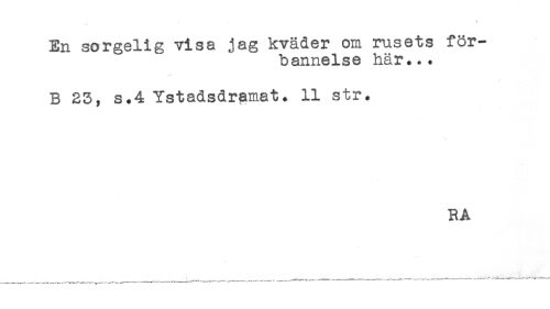 //// En sorgeli g visa jag kväder om rusets för- //// bannelse här... //// B 23, s.4 Ystadsdramat. 11 str. //// RA ////