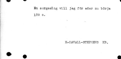 //// En sorgesång vill jag för eder nu börja //// 139 c. //// * //// H-CAVALL-STEPHENS KB. ////