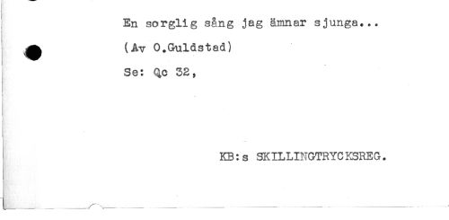 //// En sorglig sång jag ämnar sjunga... //// } (Av 0.Guldstad) //// Se: Qc 32, //// ! //// KB:s SKILLINGTRYCKSREG. ////