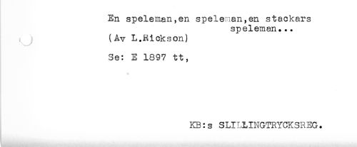 //// En speleman,en speleman,en stackars //// speleman... //// (Av L.Rickson) //// Se: E 1897 tt, //// KB:s SLILLINGTRYCKSREG. ////