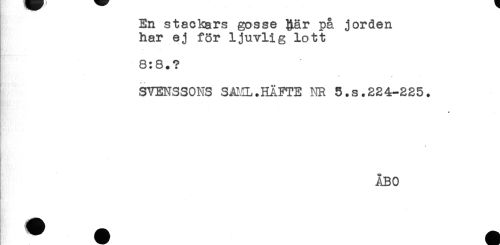 //// En stackars gosse &är på jorden //// har ej för ljuvlig lott //// 8:8.? //// ^ ... //// SVENSSONS SAHL.HÄFTE NR 5.s.224-225. //// * //// ÅBO ////