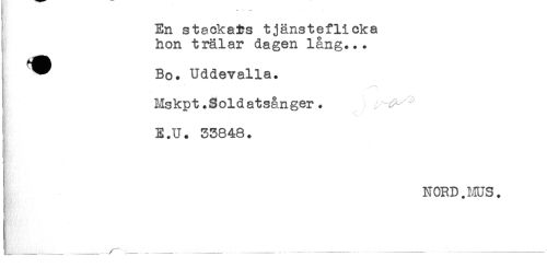 //// En stockats tjänsteflicka //// hon trälar dagen lång... //// ^^ Bo. Uddevalla, //// i Mskpt.Soldatsånger. //// E.U. 33848. //// NORD.MUS. ////