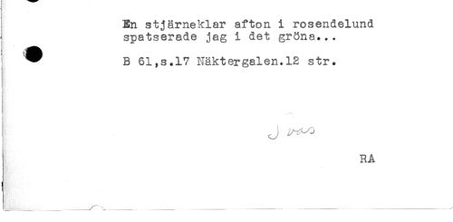 //// En stjärneklar afton i rosendelund //// ^ spatserade jag i det gröna... //// ^ ^ B 61,s.l7 Näktergalen.12 str. //// t //// t //// RA ////