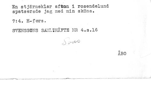 //// En stjärneklar aftnn i rosendelund //// spatserade jag med min sköna. //// 7:4. H-fors. //// SVENSSONS SAI.ILSHAFTE NR 4.S.16 //// ÅBO ////