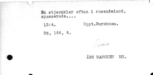 //// En stjernklar afton i rosendelund, //// spasserade.... //// 15:4. Uppt.Durchman. //// R5, 166, 6. //// //// //// //
