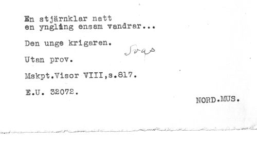//// Den unge krigaren. //// Utan prov. //// Mskpt.Visor VIII,s+817. //// E.U. 32072. //// NORD.MUS. ////