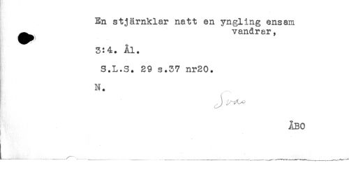 //// En stjärnklar natt en yngling ensam //// ^^ vandrar, //// 3:4. Ål. //// S.L.S. 29 s.37 nr20. //// N. //// ' j . ^ //// ÅBO ////