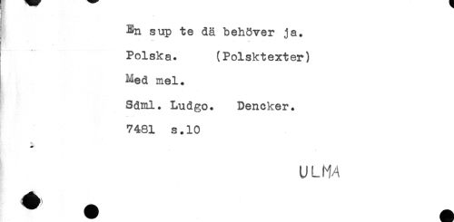 //// } Polska. (Polsktexter) //// < //// Med mel. //// Sdml. Ludgo. Denoker. //// 7481 S.10 //// ULt^ ////