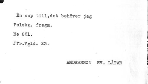 //// En sup till,det behöver jag //// v* - //// Polska, fragm. //// Ne 261. { //// B //// ! //// Jfr.Vgld. 23. j //// H //// k //// b //// ! //// ] //// ANDERSSON SY. LÅTAR S //// h ////
