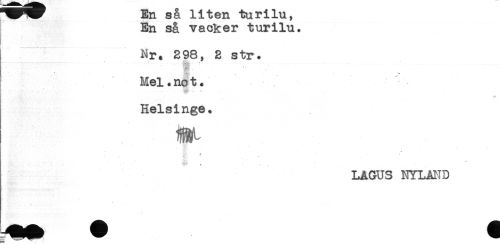 //// Eli sa JLinen *uuri-Lu, //// En så vacker turilu. //// r ^^ _.____. //// Nr. 298, 2 str. //// - - '7. //// .. * - * , . . - //// . . .. . . //// Mel .not. //// Helsinge. //// ^ * ^ . * //// LAGUS NYLAND ////