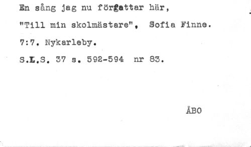 //// AMJLi O CLli^ J CR AHA JL gE/El U VMJL AAOLJL , //// "Till min skolmästare", Sofia Finne. //// 7:7. Nykarleby. //// S.t.S. 57 s. 592-594 nr 83. //// ÅBO ////