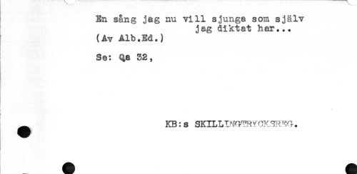 //// ! En sång jag nu vill sjunga som själv //// jag diktat har... //// (Av Alb.Ed.) //// . //// i //// Se: Qa 52, //// ) //// i //// ^ KB:s SKILLIWTRYCK3RW. //// ! ////