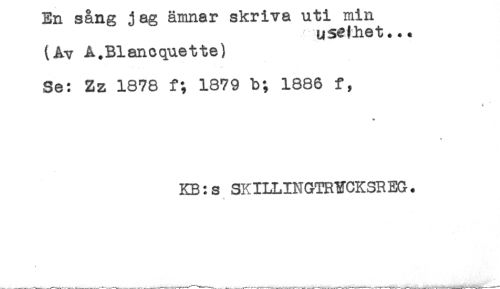 //// an sang jag aminai- nuj. //// (Av A.Blancquette) //// Se: Zz 1878 f; 1879 b; 1886 f, //// * //// KB:s SKILLINGTRYCKSREG. //// * ////