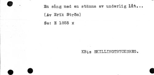//// ^ ' En sång med en stämma av underlig låt... //// (Av Erik Sty8m) //// Se: E 1855 x //// * * //// -t //// KB;s SKILLINGTRYCKSREG. ////