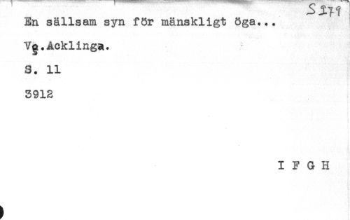 //// En sällsam syn för mänskligt öga... //// Vg.Acklinga. //// S. 11 //// 3912 //// I F G H //// t ////