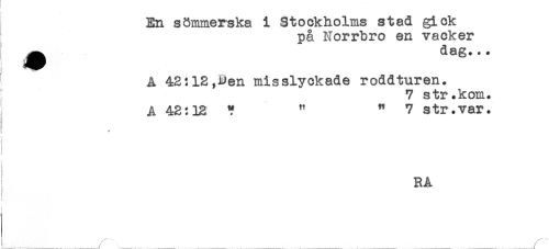 //// En sömmerska i Stockholms stad gick //// på Norrbro en vacker //// dag... //// A 42:12,Den misslyckade roddturen. //// 7 str.kom. //// A 42:12 ? " "7 str.var. //// ! //// } //// ! //// RA //// : ////