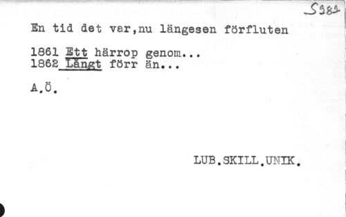 //// En tid det var,nu längesen förfluten //// . , //// 1861 Ett härrop genom... //// 186S Uangt förr än... //// A 0 //// ** * ^ * //// t //// ! //// i //// ^ //// ! //// LUB.SKILL.UNIK. //// i //// ) //// i //// ) ////