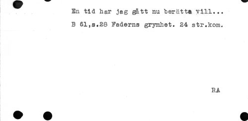 //// En tid har jag gått nu berätta till... //// B 61,s.28 Faderns grymhet. 24 str.kom. //// - //// * //// - //// ! //// i //// [ //// i //// RA ////
