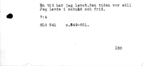 //// En tid har jag levat,den tiden var säll //// Jag levde i oskuM och frid. //// * - * //// SLS 541 s.649-651. //// r //// ÅBO //// p-'L .'-i.- ////