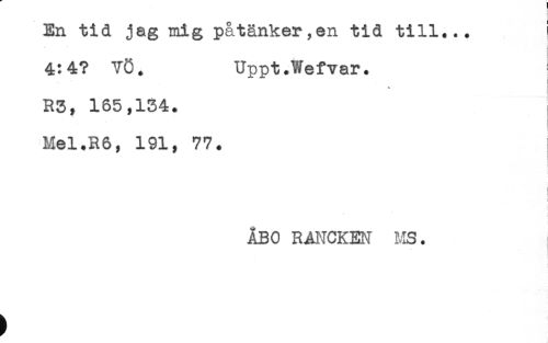 //// En tid jag mig påtänker,en tid till... //// 4:4? VÖ. Uppt.Wefvar. //// * //// R5, 185,134. //// Mel.R6, 191, 77. //// ÅBO RANCKEN A-IS. ////