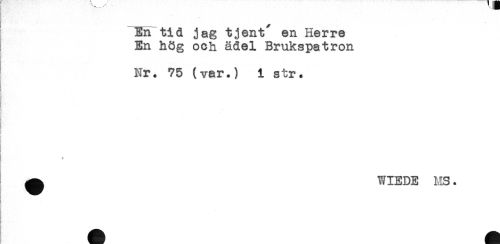 //// HSrTtid jag tjent^ en Herre //// En hög och ädel Brukspatron //// Nr. 75 (var.) 1 str. //// ; //// ^ WIEDE MS. //// t //// t ////