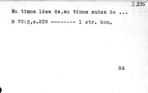 //// En timma läsa de,en timma snäsa de ... //// .. * ^ //// B 70:3,s.236 ----- 1 str. kom. //// RA ////