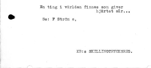 //// En ting i världen finnes som giver //// hjärtat sår... //// ^ Se: F Ström a, //// * //// : //// ! KB:s SKILLINGTRYCKSREG. //// * ' ..... , . ////