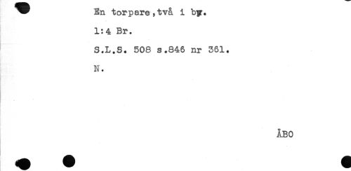 //// ^ En torpare,tva i by. //// - * //// 1:4 Br. //// S.L.S. 508 s.846 nr 561. //// N. //// . //// 4* //// ÅBO ////