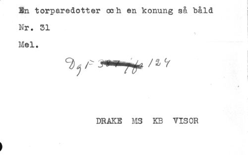 //// En torpareaotter och en konung sa bald //// Nr. 31 //// * //// Mel. //// ^ i //// j //// DRAKE MS KB VISOR ////