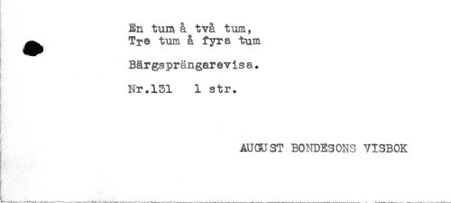 //// } //// H- - //// En tun^ å två tum, //// ^^ Tre tum å fyra tum //// Bärgsprängarevisa. //// Nr.131 1 str. //// AUGUST BONDESONS VISBOK ////
