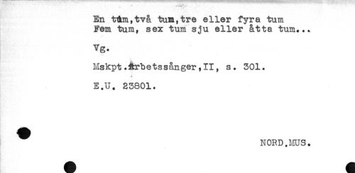 //// En t&m,två tum,tre eller fyra tum //// Fem tum, sex tum sju eller åtta tum... //// i //// Vg. //// n - - //// Mskpt.Arbetssånger,II, s. 301. //// . //// E.U. 23801. ////