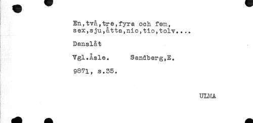 //// En,två,tre,fyra och fem, //// sex,sju,åtta,nio,tio,tolv...+ //// Danslåt //// Vgl.Åsle. Sandberg,E. //// 9871, s.35. //// ULIvIA ////