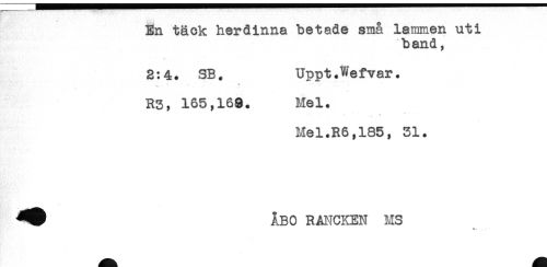 //// En täck herdinna betade små lammen uti //// band, //// 2:4. SB. Uppt.Wefvar. //// * # //// - # //// R3, 165,169. Mel. //// * . ^ . ^ * //// Mel.R6,185, 31. ////