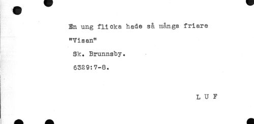 //// En ung flicka hade så många friare //// "Visan" //// Sk. Brunnsby. //// 6329:7-8. ////