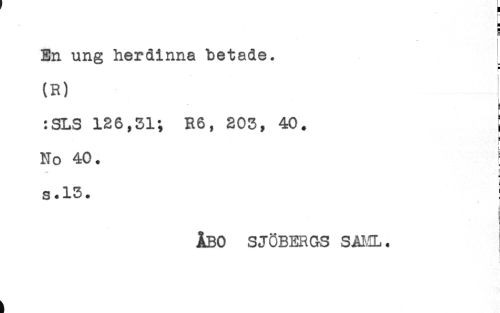 //// H //// En ung herdinna betade. //// < //// (R) //// ! //// :SLS 126,31; R6, 203, 40. ! //// i //// No 40. ! //// f< //// s.13. ! //// ÅBO SJÖBERGS SÅIA. ////