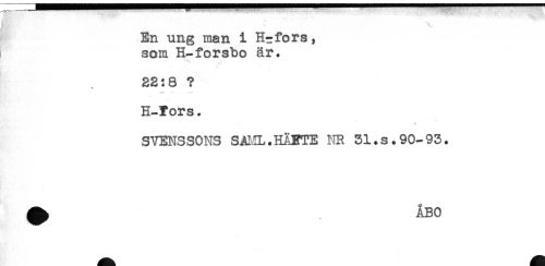 //// En ung man i Hr fors, //// som H-forsbo är. //// ' //// 22:8 ? //// H-fors. //// SVENSSONS SJU^.HÄETE NR 31.s.90-93. ////