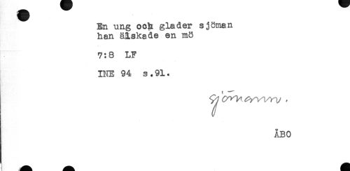 //// ^ En ung och gläder sjöman //// han älskade en mö //// 7:8 LF //// INE 94 s . 91. ////