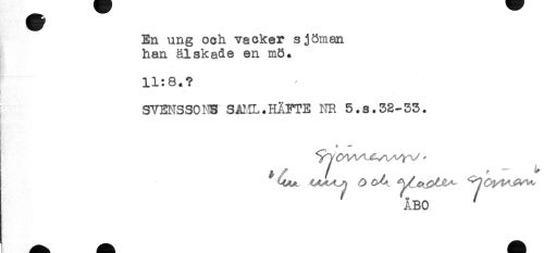 //// En ung och vacker sjöman //// han älskade en mö. //// ^Si* //// Hg; //// 11:8.? //// K //// SVENSSONS SAML.HÄFTE NR 5.s.32-35. //// ^ ÅBO ^ ////