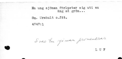 //// En ung sjöman förlustår sig uti en //// äng så grön... //// Sm. Urshult o.Jät* //// 4747:1 ////