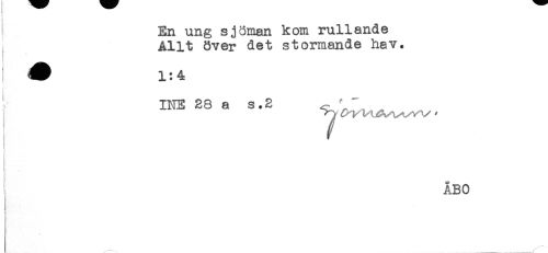 //// En ung sjöman kom rullande //// Allt över det stormande hav. //// INE 28 a s.2 ' ^ //// < //// ÅBO ////