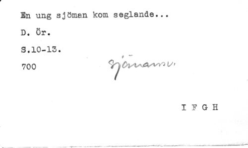 //// En ung sjöman kom seglande... //// D. 6r. //// S.10-13. //// ? //// 700 ^ //// I F G H ////