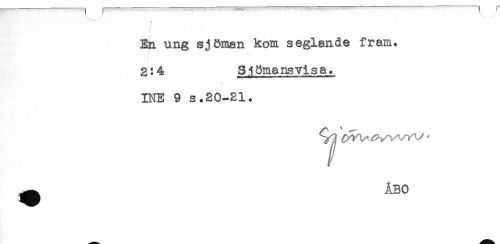 //// . //// En ung sjöman kom seglande fram. //// 2^4= Si ömans vis a. //// INE 9 s.20-21. //// ^ ÅBO ////