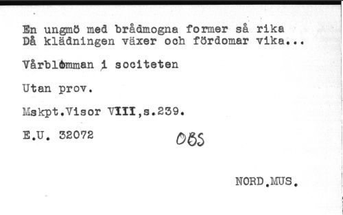 //// En ungmö med brådmogna former så rika //// Då klädningen växer och fördomar vika... //// t //// i //// Vårblomman i sociteten //// ! //// Utan prov. //// Mskpt.Visor VIII,s.239. I //// t //// ? ; //// E.U. 32072 ^^ //// c //// ! //// NORD .ms. //// ^ //// ) //// r ////