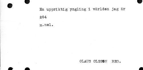 //// En uppriktig yngling i världen jag är //// 264 //// L-. * . //// m.mel. //// - //// < //// OLAUS OLSSCN REG. ////