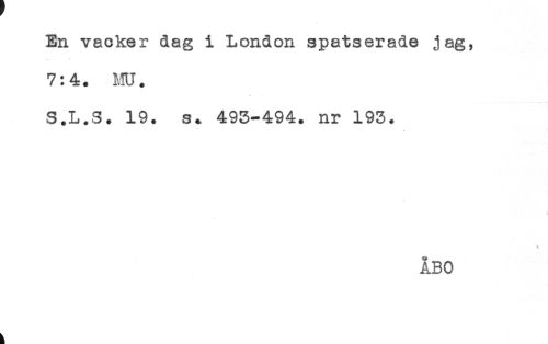 //// En vacker dag i London spatserade jag, //// 7:4. MU. //// S.L.S. 19. s* 493-494. nr 193. ////
